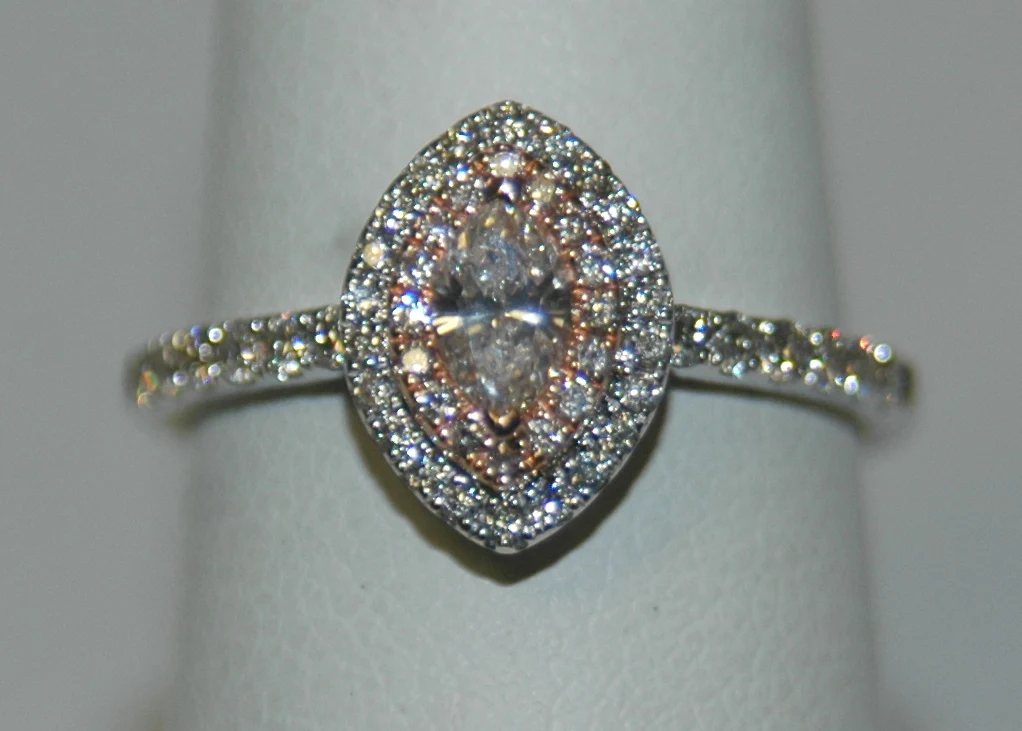 14K Two- Tone Marquise Diamond 0.29Ct Halo Engagement Ring