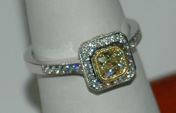 14K Two-Tone 0.42Ct Radiant Diamond Halo Ring