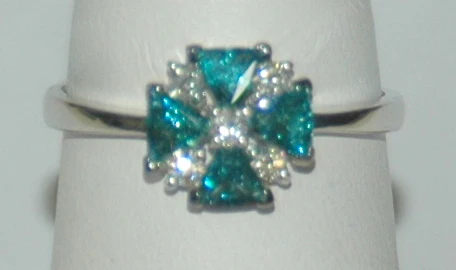 Sophisticated white gold ring featuring a mesmerizing blend of blue and white diamonds, creating a unique statement piece that captures light and elegance with every movement.