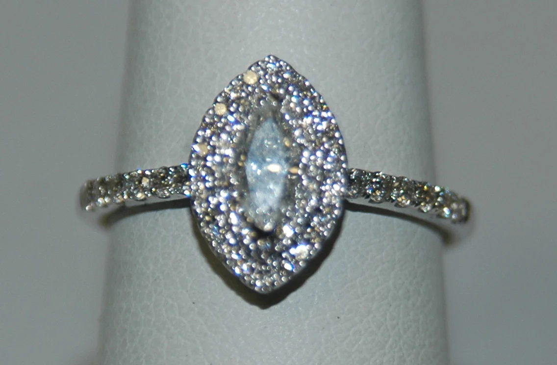 14K White Marquise Diamond 0.36Ct Halo Engagement Ring—