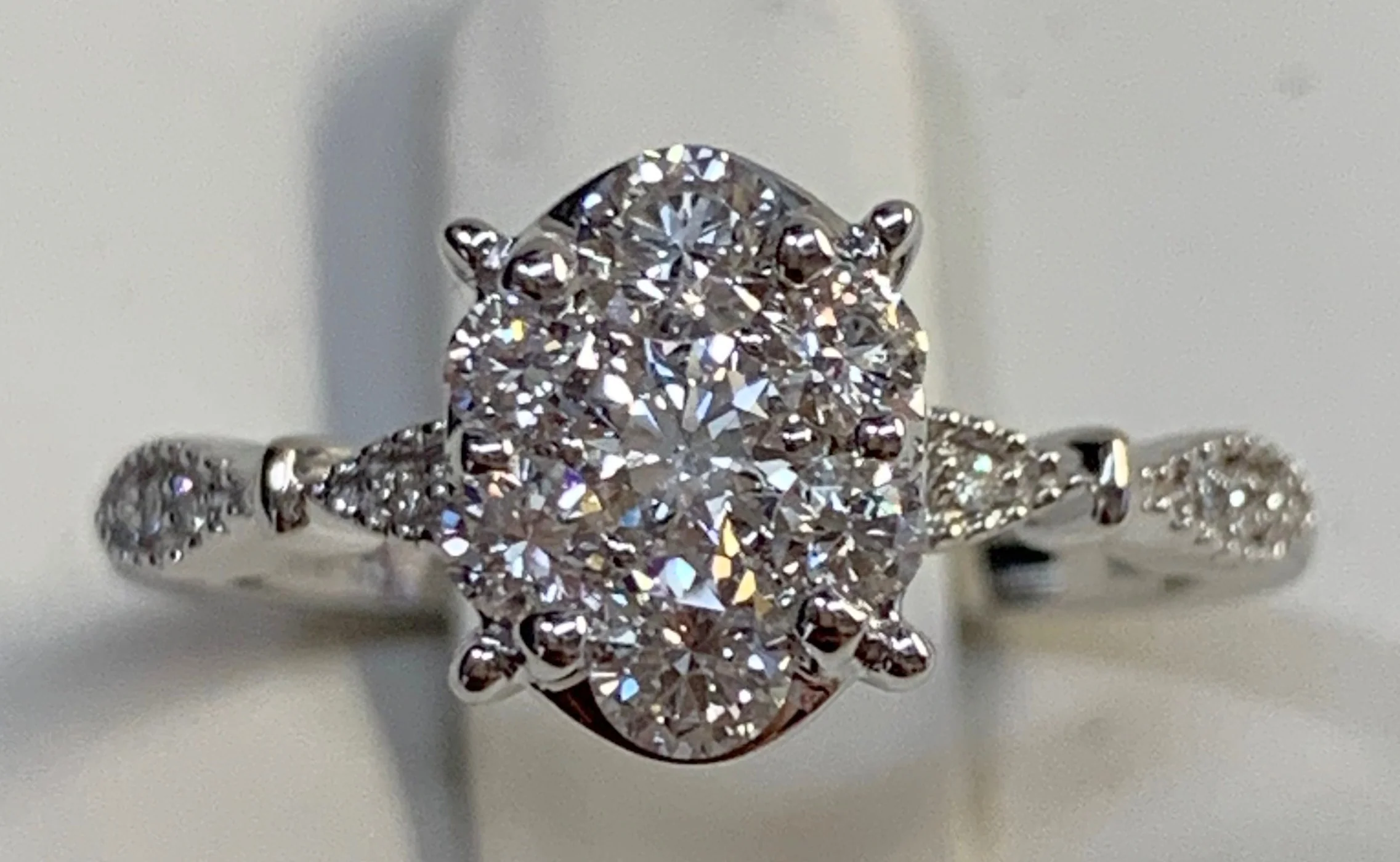 14K White Round Diamond 0.50Ct Cluster Engagement Ring
