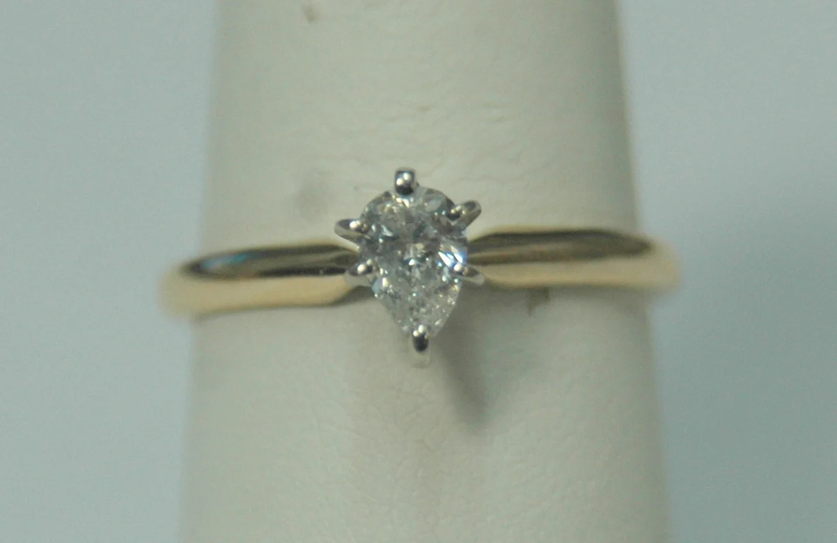 14K Yellow Pear Diamond 0.50Ct Solitaire Engagement Ring