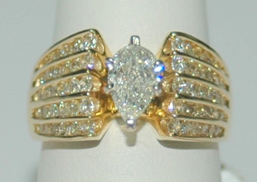 Celebrate modern sophistication with our 14K Yellow Pear Diamond 2.15Ct Contemporary Engagement Ring. This piece features a 2.15 carat pear-shaped diamond, set in a sleek 14K yellow gold band. Perfect for the bride who appreciates contemporary style and timeless elegance, this ring symbolizes your unique love and enduring commitment, designed to captivate and inspire for a lifetime.