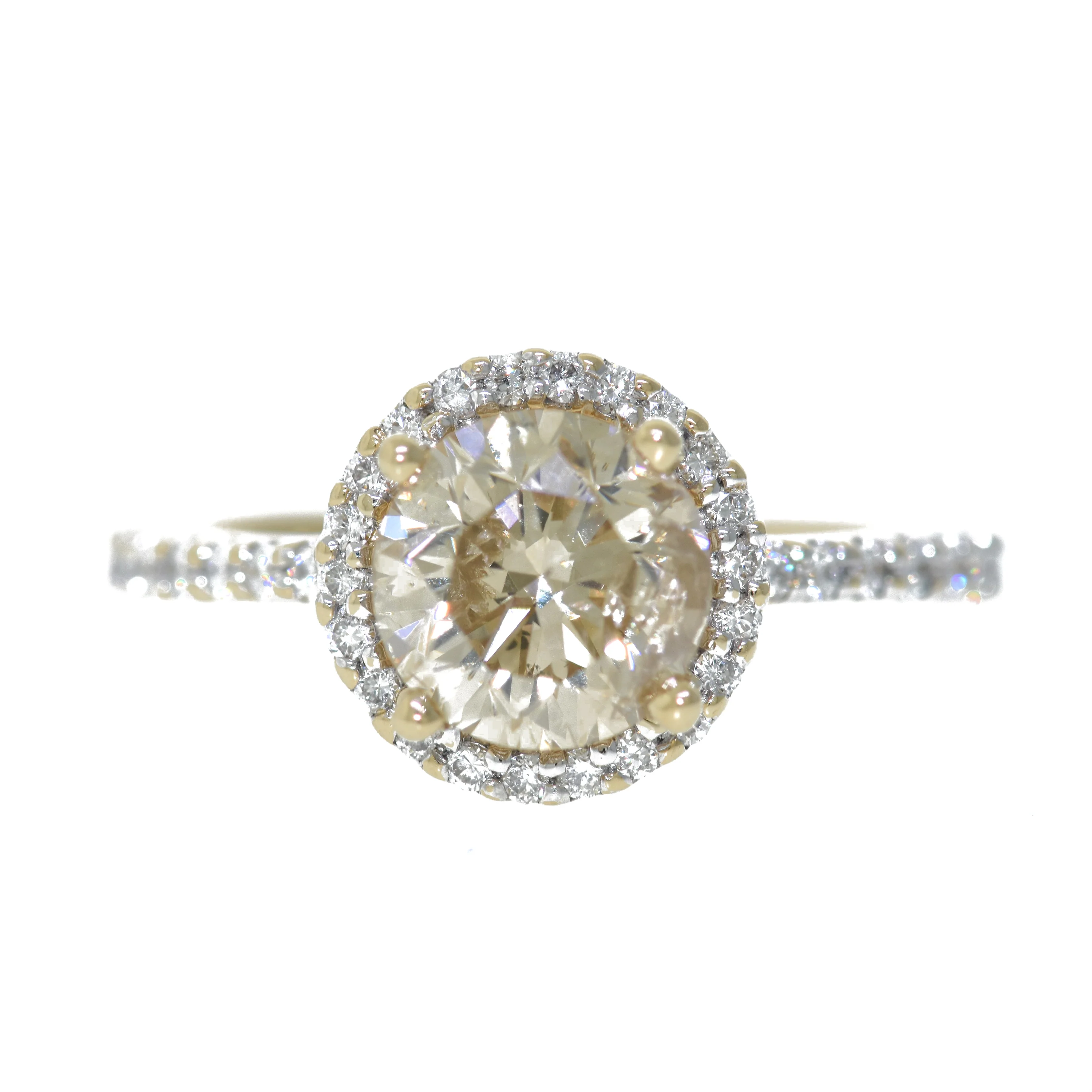 14K Yellow Gold 1.88Ct Round Diamond Halo Engagement Ring