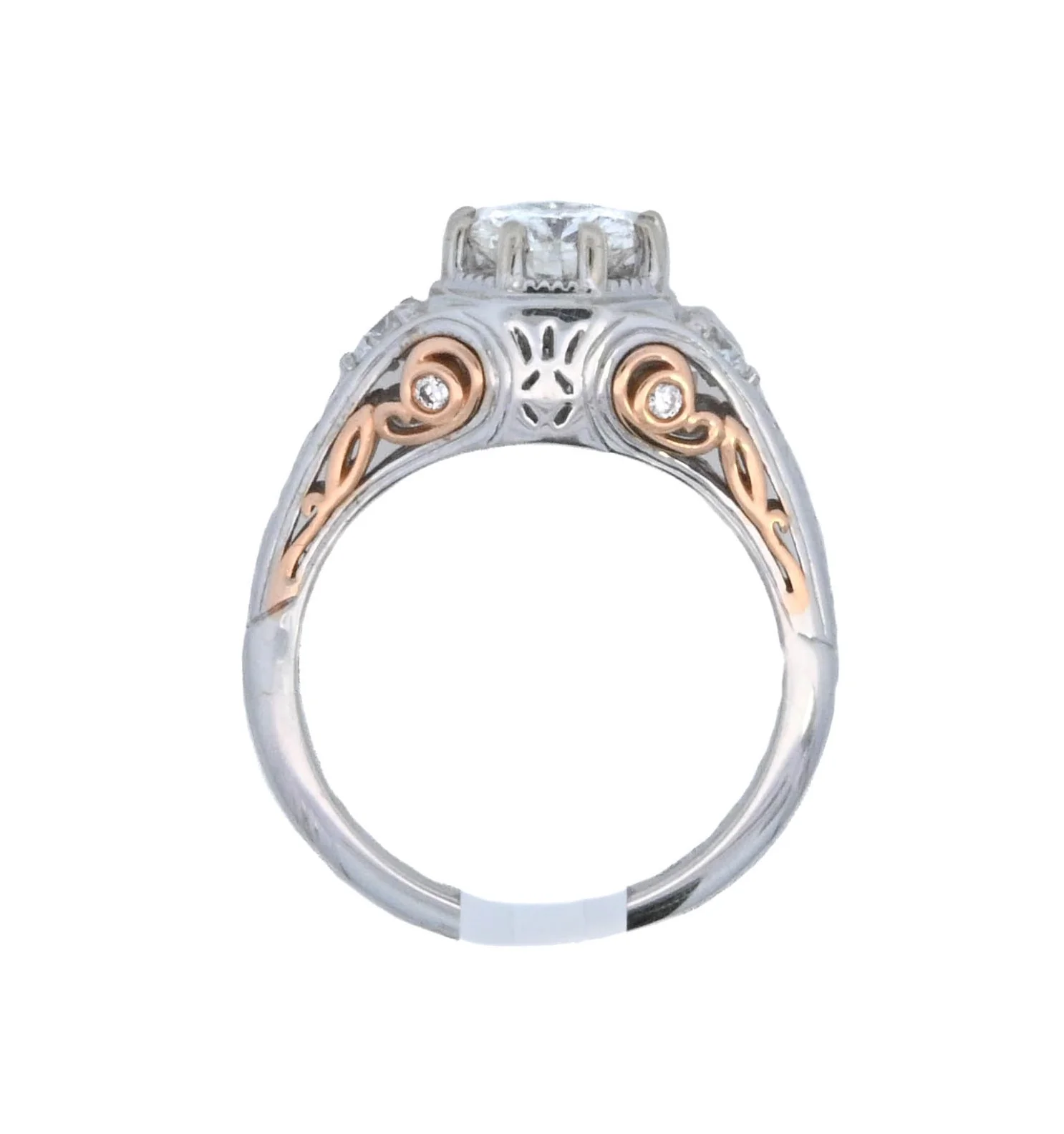 Embrace timeless romance with our 18K Two-Tone Round Diamond Vintage Engagement Ring. Featuring a 1.01Ct round diamond set in an intricate vintage design, this ring exudes elegance and charm. Perfect for symbolizing your unique love and everlasting commitment.