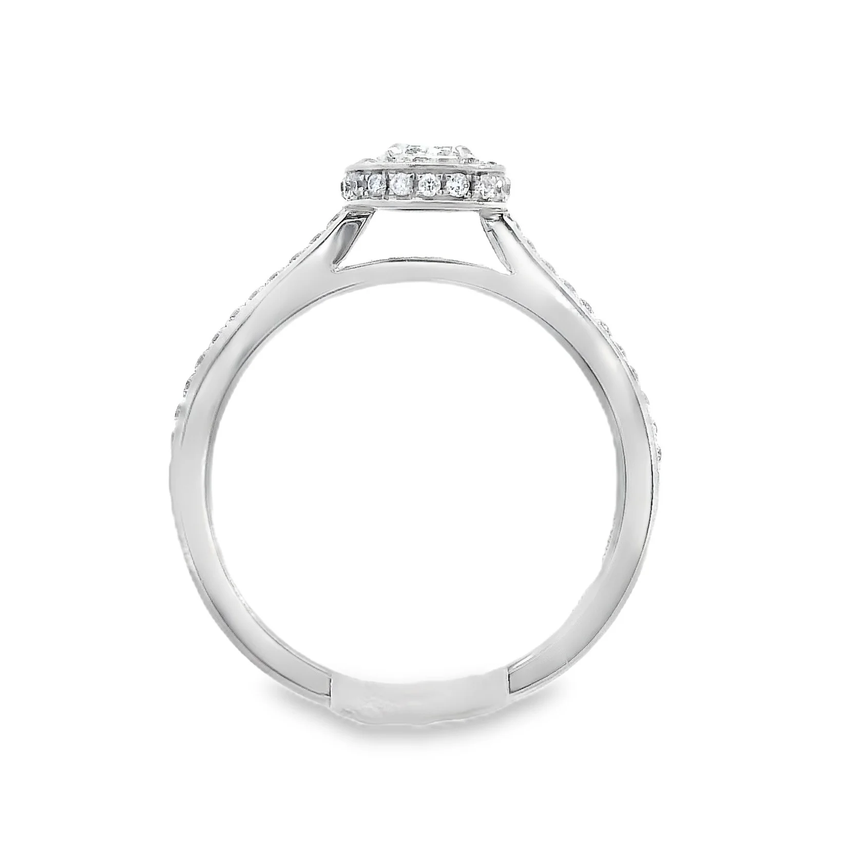 18K White Cushion Diamond 0.31Ct Halo Engagement Ring