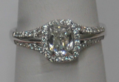 18K White Gold 0.64Ct Cushion Diamond Halo Ring