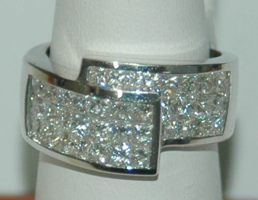 18K White Gold 2.30ct. Invisible- Set Diamond Fashion Ring