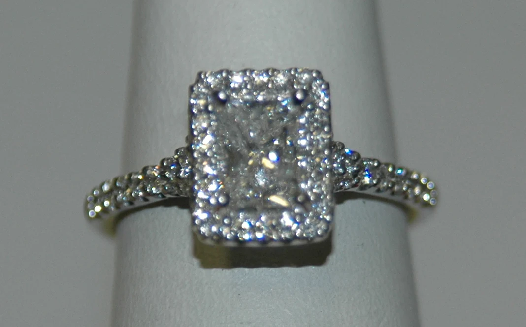 18K White Radiant Diamond 0.98Ct Halo Engagement Ring