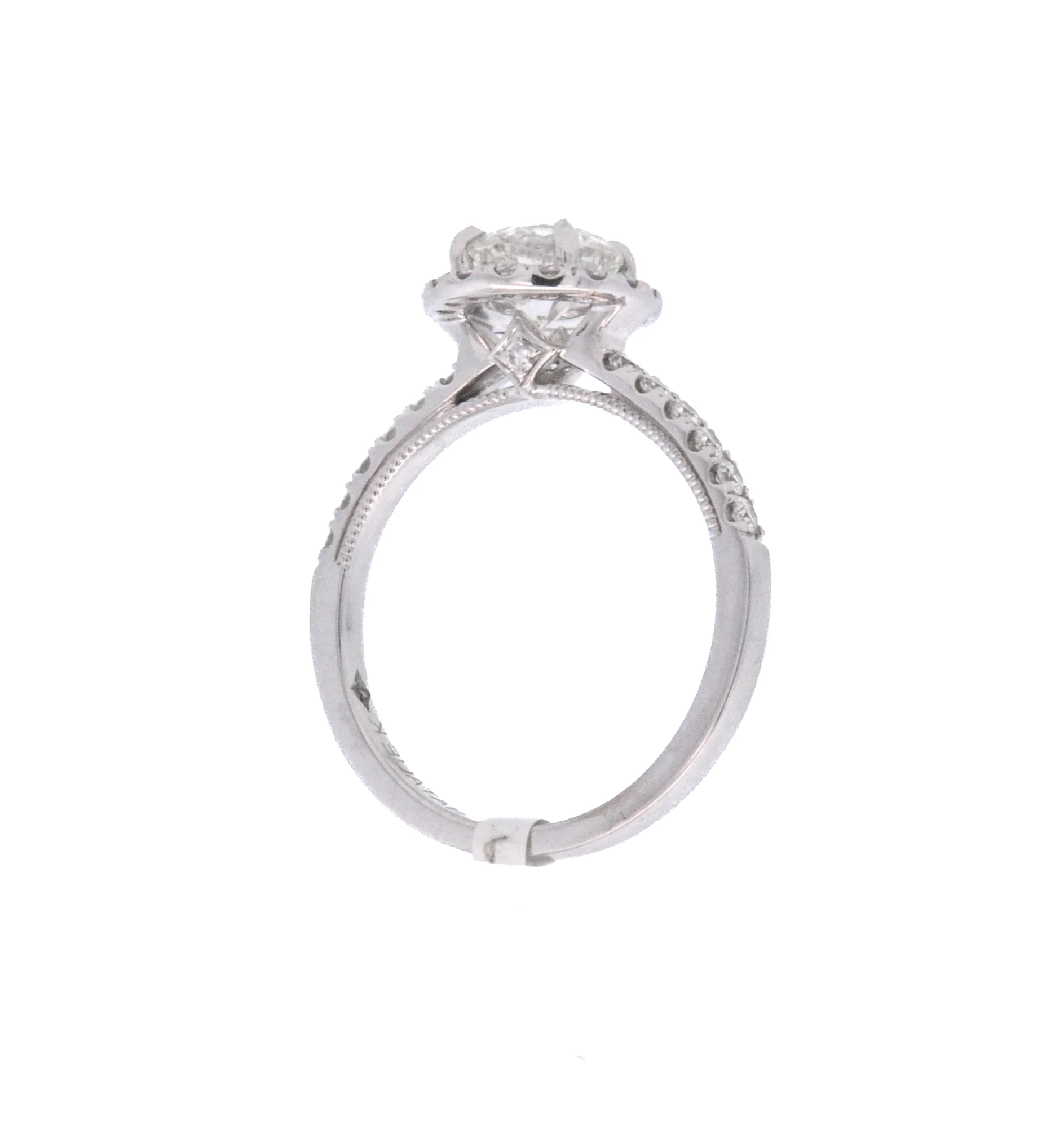 18K White Round Diamond 1.01Ct Halo Engagement Ring—
