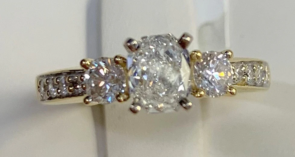 18K Yellow Cushion Diamond 0.45Ct 3 Stone Engagement Ring
