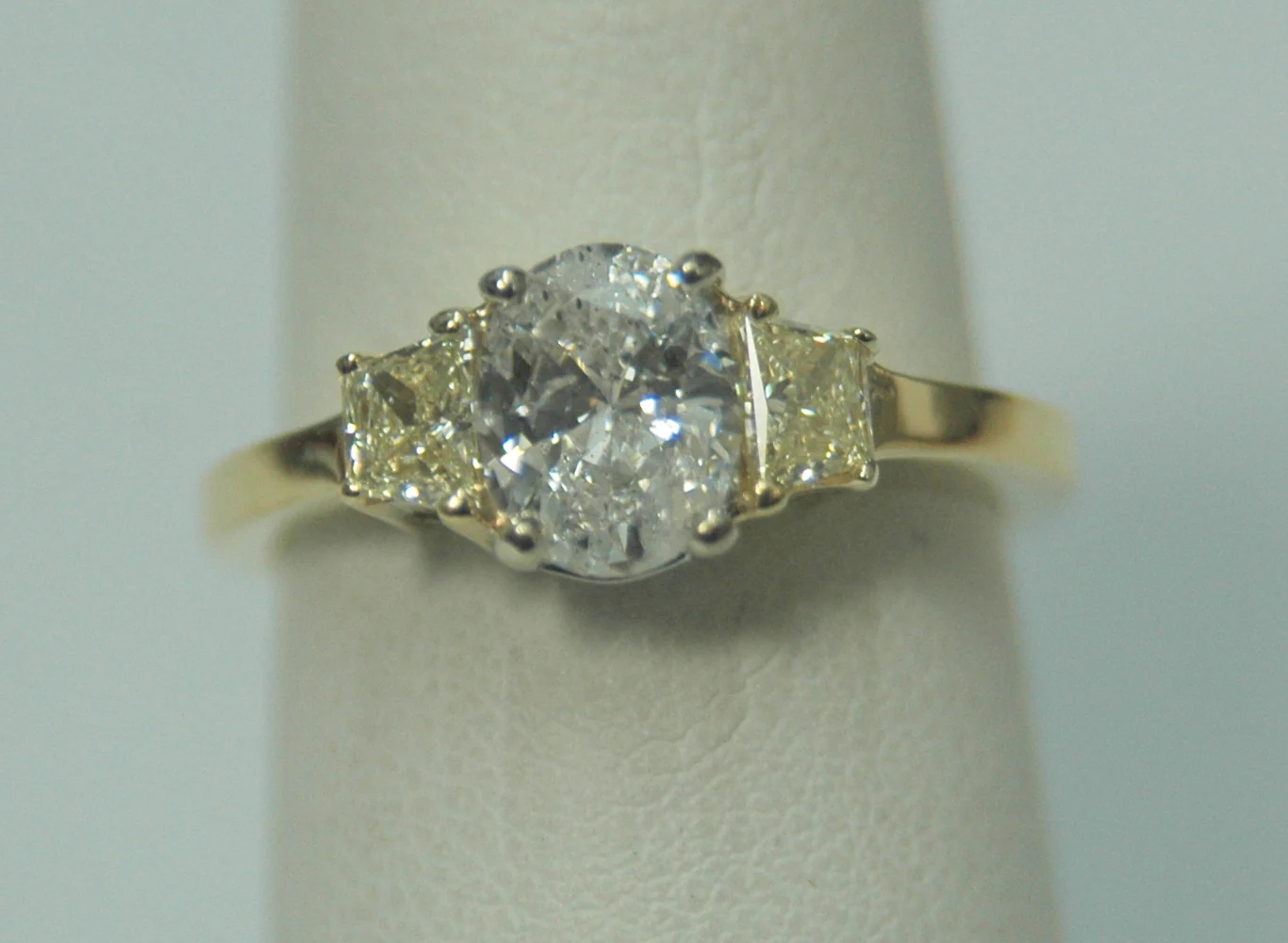 18K Yellow Oval Diamond 1.50Ct 3 Stone Engagement Ring—